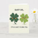 This design shows two sweet, anthropomorphized four-leaf clovers centered on a soft light-cream background, leaning toward each other like close friends sharing a quiet moment 💚. The left clover is a deep emerald green, while the right clover is a lighter lime green, and the contrast makes them feel like a matched pair with their own personalities. Each has small curved smiles, closed eyes, and rosy orange blush on their cheeks, as if they’re enjoying the same gentle joke. Their rounded leaves and simple faces keep the scene calm and affectionate, with their closeness doing most of the talking ☘️. At the top, the text “SWEET GIRL.” sits in uppercase, spaced neatly and easy to spot against the pale background. Below the clovers, the line “I’M SO LUCKY TO HAVE YOU.” is centered and set in a darker green that ties back to the characters. The layout stays minimal, with plenty of open space around the pair and the two lines of text. The two clovers sit side by side in the middle, their blush marks glowing softly in orange against green leaves.