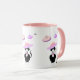 Cute mugg med en tuxedo-katt och flygande sågregat mönster. Texten på högerna kan vara personlig.