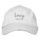 Lucy namn broiderade i söt mjuk rosa-skrift för din favoritkvinna eller flicka Lucy. Förbannat med fem matchande blomsterstjärnor.