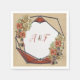 Mjukt ljust varmt smör-färg med ett geometriskt brunt läder ram dekorerat med läderblommor av krämer, löv och grönt För att anpassa sig till initialerna med bröllop