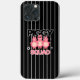 Telefonfodral med lustig rosa, tre pigment på svart strimlad bakgrund