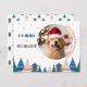 Sprid den festliga stämningen denna högsäsong med ett roligt och personligt julkort! Framsidan av detta kort har en lekfull snöbollram som är speciellt utformad för att visa ett foto av din älskade hund, vilket ger en hjärtvärmande och personlig touch. De moderna, färgglada julgranarna vid designens bas ger en livlig julstämning, medan gyllene stjärnor glittrar i bakgrunden för en magisk effekt. Ditt familjenamn är konstnärligt format runt fotot, vilket gör detta kort verkligt unikt. Orden "Merry" och "Bright" visas i en rad glada färger, vilket ger extra betydelse till ditt julbudskap. På baksidan hittar du ett stilrent mönster av fyra moderna julgranar, som fullbordar kortet med en chic, festlig touch. Detta kort är det perfekta sättet att dela din kär