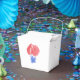 De primitiva rödblå luft-ballongen ritas i vattenfärger och placeras på vit bakgrund.