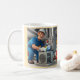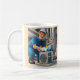 Den här illustrationen visar en erfaren luft-konditioneringstekniker som reparerar en trasig enhet. Med glädje, fullt av energi, och med ett stort leende gör detta arbete hans jobb. Ditt kaffe mugg kan enkelt anpassas efter dina behov.