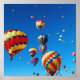 Färgfulla flytande luftballonger som flyter i blå himmel.