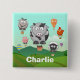 Ljusstark och färgstark tecknad bild av luftballonger i form av boskap som flyger högt över en bergslandsbygd. Roligt för både barn och barn i hjärtat.