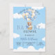 Bjukstöldsinbjudan med björn i Luftballong med blå och vita ballonger