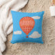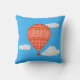Dekorativ kudde i en digital illustration av en luftballong, i mönster av korall orange och grädde, mot ett blått kinesiskt glansigt himlar, med vita marmorerade klumpar