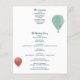 I dessa bröllopsprogram finns mina målade illustrationer av luftballonger med realistiska bilder av ballonger i stil i rött, blått och grönt tillsammans med vita moln som riktas mot ett ljusat blå himmel.