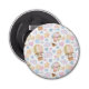 Flaska-öppnare med ett sött och vismiskt mönster. Luftballonger och söta moln med ansikte bland stjärnor, hjärtan och ballonger. Mjuk pastel färg är en bra utformning.