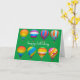 Det här är födelsedagskortet för äventyrliga människor som vill åka luftballong. Ett skriptteckensnitt, med grattis på födelsedagen-meddelandet på ett grönt-kort med 8 olika luftballonger för färgad.