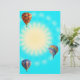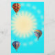 Ljus blå himmel, mjuk glödande sol med halo och ljusa luftballonger med färgad som flyter upp, upp och bort. Skadligt papper för dina anteckningar och brev.