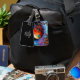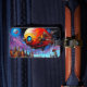 +{ AI Art }+ Colorful steampunk airship hovers over medieval city on other planet.