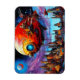+{ AI Art }+ Colorful steampunk airship hovers over medieval city on other planet.