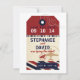 Packa dina väskor och få redot att flyga! En söt och enkel besparing datumet för ett destinationsbröllop. Visas i röda och blå mörkar. Anpassa med namn, plats och bröllop-datum.