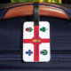 The design displays the flag of Montreal in vivid detail, with the red Cross of St. George dividing the white background into four sections—each featuring a meaningful floral emblem. The blue fleur-de-lis, red rose, green shamrock, and purple thistle pay tribute to the French, English, Irish, and Scottish communities that helped build and shape the city's unique identity. This flag is a powerful representation of unity, diversity, and deep-rooted history, making the tag a meaningful accessory for travelers with a connection to Montreal.