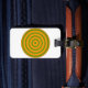Anpassade bagagetapp med utrymme för att lägga till egen text, komplett med en färgstark koncentrisk cirkelformad utformning i en stil tryckt på ena sidan av märkrn, för enkel identifiering.