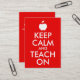 Det röda vita anpassadets äppelform "Behålla Lugn and Teach On"-parodutformning för lärare baserat på den klassiska poster. Du kan ta bort kontaktinformationen på baksidan eller ändra teckensnittet storlekt och stil.