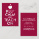 Det röda vita anpassadets äppelform "Behålla Lugn and Teach On"-parodutformning för lärare baserat på den klassiska poster. Du kan ta bort kontaktinformationen på baksidan eller ändra teckensnittet storlekt och stil.