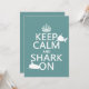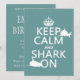 Det står"Behålla Lugn och Shark On" i stil i den klassiska behålla-lugnen poster. Silhouettes av två hajars simma bredvid ord. Det är en underbarare fin perfekt för alla som kärlek hajar.