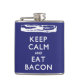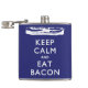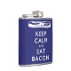 Behållans Lugn och ETT-bacon. Bacon lugnar dig, kärlek och behållor dig... Du! Debitant delikat bacon och självsanering. Baserat på Världskriget Two Poster "KEEP CALM AND CARRY ON". Vit text och bild över en marin blå bakgrund (#000080 Hex Färg).