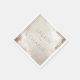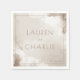 Denna design för bröllopsservetter har en minimalistisk och elegant layout med en mjuk, neutral färgpalett i beige och kräm. Den abstrakta akvarellbakgrunden skapar en drömsk, eterisk atmosfär, medan den rena, sans-serif-typografin tillför sofistikation. Perfekt för formella tillfällen som bröllop eller förlovningar, förmedlar denna design en lugn och romantisk stämning, vilket gör den idealisk för att fira kärlek och engagemang.