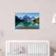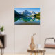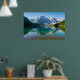 Fånga naturens lugn med denna fantastiska bild av berg som speglas i en kristallklar sjö. Det gröna och blå vattnet avslöjar stenar på botten, medan klippiga toppar och täta skogar omger scenen. Intensivt solljus skapar en livfull kontrast mellan himmel och jord. Perfekt för rumsdekoration, kalendrar och produkter som firar utomhusmiljön. Ett verk som förmedlar fred, storhet och det orörda skönheten i det naturliga landskapet, perfekt för reselskare.