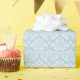Detta eleganta presentpapper har ett upprepat mönster av intrikata blomster motiv i mjukt vitt mot en ljusblå bakgrund, vilket ger en sofistikerad och lyxig känsla. Designen är inspirerad av klassiska damastmönster, med detaljerade blommor och blad arrangerade i ett sömlöst rutmönster som utstrålar lugn och förfining. Perfekt för speciella tillfällen eller vardagliga presenter, ger detta papper en touch av underdriven elegans till vilken present som helst.