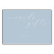 Denna bröllopsbordsskylt har en minimalistisk design med en lugnande ljusblå bakgrund som skapar en luftig och lugn atmosfär. Frasen "cards and gifts" är elegant skrivet i kursiv stil i mitten, kompletterat med ett enkelt "TACK" i sans-serif-stil nedanför, som förmedlar värme och tacksamhet. Den rena typografin och det rikliga negativa utrymmet betonar klarhet och sofistikering, vilket gör den perfekt för att uttrycka uppskattning på din speciella dag. Dess moderna men klassiska stil säkerställer att den passar sömlöst in i vilken bröllopsdekor som helst, och lägger till en touch av elegans till din fest.