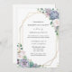 Rustik Boho-succulent bröllopsmottagning fest inbjudan med lila, gröna och dammiga blå succulenter och en guld ram. Anpassa med din information för mottagningsdagen. Klicka "klicka för att anpassa ytterligare" för att ändra typsnitt, storlek eller färg.