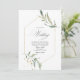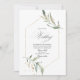 Vattenfärg blomstergrönska bröllopsinbjudan i pastellfärger med guldgeometrisk ram som kan anpassas till ditt evenemang.
