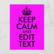 Skapa en egen "Behålla Lugn och Redigera text" med textmeddelandet med en magenta eller fuchsia-bakgrund och ett svart krona med text. Om du behöver minska det storleka teckensnittet för att passa ditt ord-val föreslår vi att du använder systemet för att markera hela designen innan du ändrar storleka. Då bibehålls textdesignens grundläggande dimensioner. Du kan också ändra bakgrunden till shock rosa.
