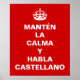 Lönsam slogan i spansk text baserad på den populära "behålla lugn" poster med vit krona och ren röd bakgrund. Besök VINTAGEN SKRIVARORE om du vill ha tusentals presentidéer för vintagen