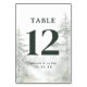 Det här bröllopsbordskortet har en lugn skogsscen med höga tallar i dämpade gröna och grå nyanser som skapar en eterisk atmosfär. Designen visar en fet siffra "12" i mitten, omgiven av gott om negativt utrymme för tydlighet. Anpassningsbara textfält möjliggör personalisering med namn och datum, medan typografin kombinerar elegant serif och rena sans-serif-teckensnitt för att förbättra läsbarhet och stil. Perfekt för bröllop eller formella sammankomster, utstrålar detta kort lugn och naturinspirerad skönhet, vilket gör det till ett idealiskt tillägg till alla evenemang.
