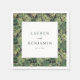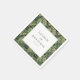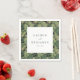Dessa bröllopservetter har en modern, botanisk design med en fyrkantig layout och ett centralt vitt utrymme omgivet av frodiga tropiska palmkvistar i olika gröna nyanser. Den livfulla bakgrunden kontrasterar vackert mot den rena typografin, som inkluderar eleganta serif-typsnitt för namn och ett enkelt sans-serif-typsnitt för datum, vilket skapar ett organiserat men sofistikerat utseende. Perfekta för att tillföra en exotisk touch till din bröllopsdekoration, framkallar dessa servetter känslor av tillväxt och harmoni, vilket gör dem idealiska för att fira kärlek i en lugn och stilfull miljö.
