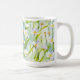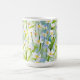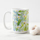 En klassisk mugg dekorerad med mjuka vita och lavendel vildblommor mot en mjuk blågrön bakgrund, som ger en lugn, naturinspirerad estetik idealisk för dagliga kaffemoment och en raffinerad present till alla som älskar botanisk konst.