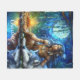 Lugn natt vid flod med infödd och varg fleecefilt