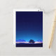 Det här lugna vykortet visar en vidsträckt, djupt indigofärgad natthimmel fylld med en strålande stjärnhimmel och en lysande Vintergata. Ett ensamt träd står i djärv silhuett mot en mjuk blå och violett horisont, där avlägsna kullar och de små, varma ljusen från en tyst by tittar fram genom mörkret. Scenen är färdig med en texturerad, målerisk känsla, som fångar ett ögonblick av djup fred och kosmisk underbarhet. Det här vykortet är ett perfekt val för att skicka en genomtänkt hälsning, en lugnande hälsning eller som en vacker souvenir till alla som finner inspiration i natthimlen.