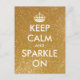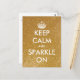Faux guld glitter Behålla lugn och gnistra på vykort. Anpassadets Behålla lugn och fortsätt med vykortsutformning. Vintage håller typografin mall med krona.