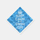 Anpassadet "Behållans Lugn och Simma på" med vit text mot färgton av blått simmande bassäng vatten. Blått ljusa akvafébakgrund. Idrottsteamet party décor för din favoritsimmare eller dykare.