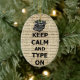 Modern tar på sig den populära slogan "behålla lugn" på en vintage papper bakgrund