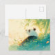Det här förtrollande vykortet visar en fridfull panda som blickar uppåt med en salig min, boende i en frodig botanisk fristad. Konsten är utförd i en drömlik akvarellstil med en livfull palett av teal, smaragdgrönt och varmt gyllene bärnsten. Mjukt gult ljus filtrerar genom en tät bambulund och skapar en eterisk glöd som lyser upp pandans päls och de ömtåliga orangea vildblommorna som är utspridda över ängen. Med sin lugna atmosfär och mjuka, måleriska texturer fångar det här verket ett ögonblick av ren naturinspirerad frid. Det här vykortet är ett perfekt val för att skicka en försiktig "tankar på dig"-hälsning, en fred