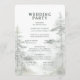 Det här bröllopsprogrammet har en lugn, naturinspirerad design med vertikal layout och mjuka pastellfärger. Bakgrunden är ljust beige, kompletterad med dämpade gröna och grå nyanser i akvarellillustrationer av träd som skapar en eterisk atmosfär. Elegant typografi framhäver evenemangets detaljer, med anpassningsbara platshållare för namn, datum och platser, vilket säkerställer klarhet och sofistikation. Den övergripande stilen är minimalistisk och lugn, perfekt för att fira en formell bröllopsceremoni omgiven av naturlig skönhet.