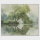 Presentpapper - Lugnande akvarell pilträd med mjukt grönt lövverk och fridfull sjöreflektion. Perfekt för naturälskare, mindfulness-sökare och de som älskar lugna, avkopplande scener.