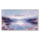 Fly till en värld av hisnande, eterisk skönhet med detta magiska magnetiska visitkort. Designen visar en fantastisk, målerisk landskap med en lugn, glasslik sjö som reflekterar en mjuk, drömlik himmel i pastellrosa, lila och mjukt blått. Avlägsna, disiga lila berg uppstiger i bakgrunden, medan skogklädda stränder kantade den stilla vattnet. I förgrunden blommar vackra rosa och lila blommor, till synes levandegjorda av en magisk kaskad av gnistrande guldglitter som tycks sväva i luften. Hela scenen är innesluten i en fin, minimalistisk guldbård som ger en sista touch av elegans. Denna design är perfekt för företag som förmedlar lugn, skönhet och fantasi, såsom holistiska välbefinnande-retreater eller meditationscenter, finkonstfotografer, fantasy-författare eller konstnärer, lyxiga dagsspa eller romantiska sjösidebröllops