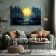 Denna fängslande väggkonst visar en lugn månbelyst skogsväg upplyst av en lysande fullmåne under en dimmig natthimmel. Den fridfull atmosfären förstärks av mörka, höga träd som inramar scenen och frammanar en känsla av lugn och mystik. Perfekt för naturälskare och de som söker stämningsfull konst för att förhöja sin bostad, fångar detta konstverk skönheten i en tyst natt under stjärnorna. Lämplig för moderna interiörer, denna oljestilade tryckta målningen blandar elegans med naturens mystik.