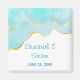 En bröllopsinbjudan magnet med en lugn sommar design. Turkos / akvagrön akvarell bild med en vågig falsk guld kant. Elegant och vacker.