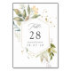 Vattenfärg blommig grönska bröllopsbord nummerkort i pastellfärger med guld geometrisk ram kan anpassas till ditt evenemang specifikationer.