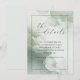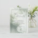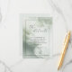 Det här bröllopsinlägget har en lugn akvarelldesign med mjuka gröna och vita nyanser som skapar en elegant och lugnande atmosfär. Layouten är centrerad runt texten, som är prydligt inramad inom ett kantigt område, vilket förbättrar läsbarheten och fokuset. En blandning av kursiv stil och rena seriffer typsnitt tillför sofistikation, medan den minimalistiska stilen säkerställer klarhet utan distraktion. Perfekt för formella tillfällen förmedlar detta kort lugn och förfining, vilket gör det idealiskt för att dela viktiga detaljer om din speciella dag.
