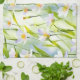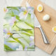 En kökshandduk prydd med ömtåliga vita och lavendel-vildblommor på en mjuk blågrön bakgrund, som ger lugnande, naturinspirerad elegans till vardaglig matlagning och städning. En raffinerad, funktionell accent som lyser upp köket och gör en vacker present till älskare av botanisk konst.